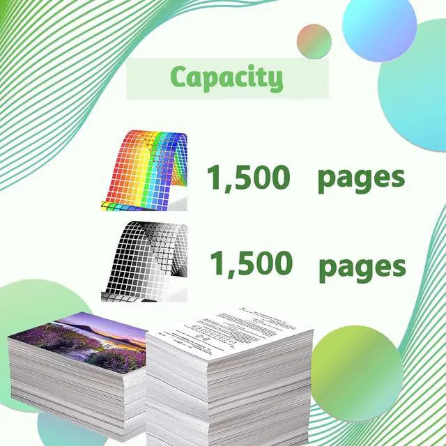 Large Capacity: Our Toner Cartridges we provide can meet the large-scale printing needs. 1,500 pages per Black cartridge, 1,500 pages per Cyan / Magenta / Yellow cartridges (5% coverage on A4 paper)
