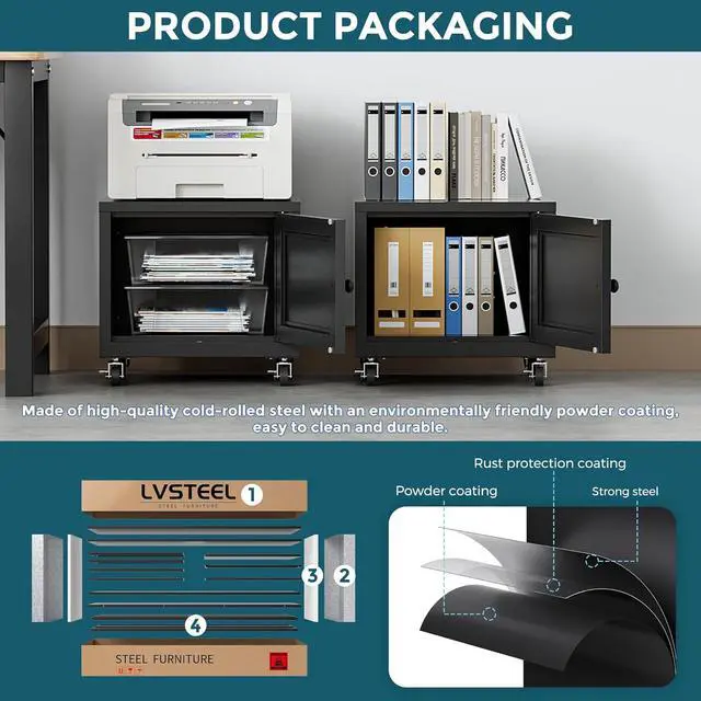 [Practical & Stylish]:LVSTEEL Printer Stand (11.8"D × 15.7"W × 14.6"H) offers stable daily use and lockable flexible mobility (easily move between corners/desk sides). Its sleek, refined design blends with any furniture, boosting your office appeal.