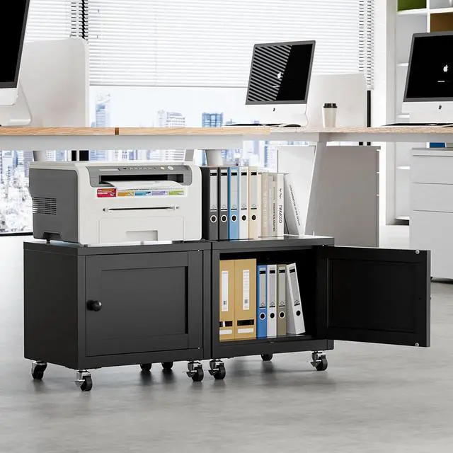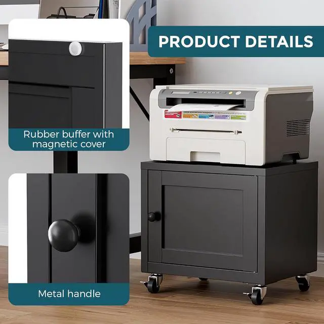 [Storage Design] This small storage printer stand offers dual convenience: its top holds printers stably (for office & home use), and the small printer cabinetwith built-in storagelets you easily tuck away books, documents and office supplies. No extra storage boxes, no cluttered deskskeep your workspace neat.