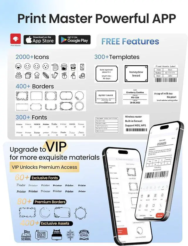 Multifunctional App: The Phomemo M250 label maker printer comes with the powerful "Print Master" app. Create various content like QR codes, text, OCR, images, voice recognition, and batch printing. Choose from over 1500 symbols, 200+ templates, 110+ fonts, and 20+ languages for limitless customization options