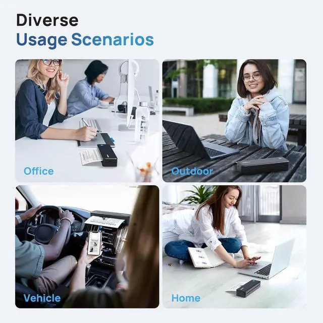 Long-Lasting Durable Battery: Powered by a 2600mAh battery,(charging adapter not included) our travel-friendly wireless portable printer delivers extended operation. The thermal printer maintains ultra-low power consumption in standby mode. This wireless printer and portable printer can produce up to 160 sheets per charge. For added convenience, the compact home printer supports simultaneous charging and printing via USB cable - making it an exceptionally practical Bluetooth printer solution impresora portátil