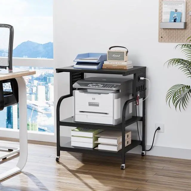 Ample storage spaceThe VINGLI Printer Stand, sized at 23.6''W x 18.9''D x 31.5''H, is an extra - large printer shelf. It offers abundant space, making it a perfect printer stand with storage for home and office use.