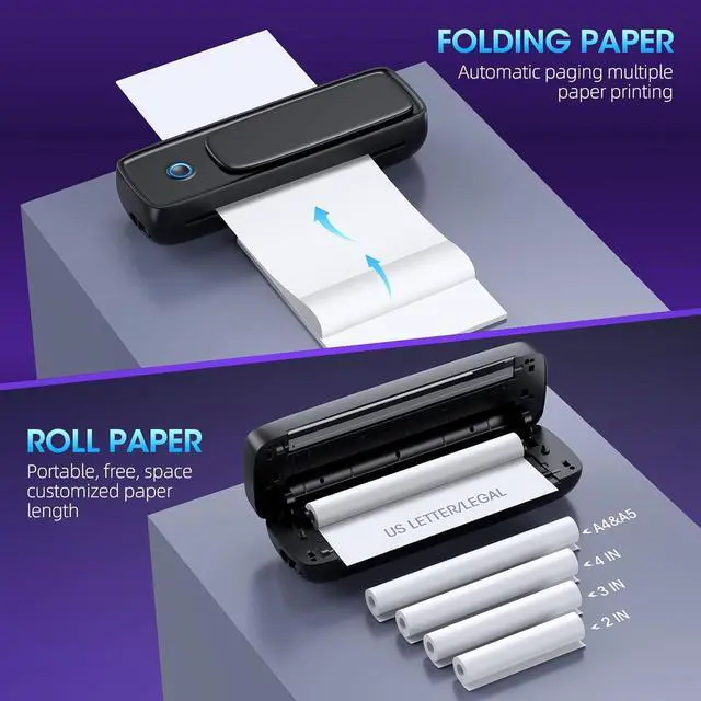 Multi-Size Compatibility - Works with roll & folded thermal paper in popular sizes: US Letter (8.5"x11"), Legal, A4, A5, and narrow rolls (2"/3"/4" widths). No ink neededjust replace the paper!