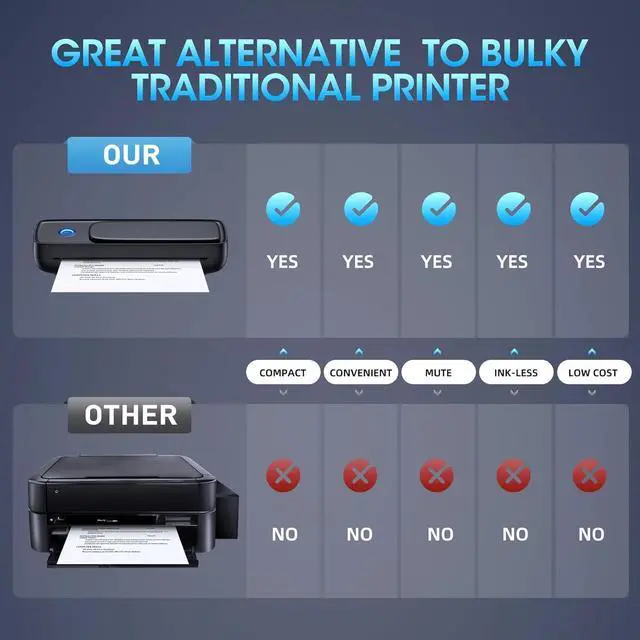 Thermal Inkless Technology - Saves money with no ink cartridges. Eco-friendly, low-maintenance printing thats perfect for documents, labels, receipts, and simple graphics (black/white only).