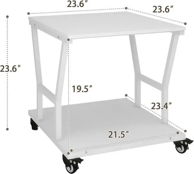 Large Printer Table The table top size is 23.6"W x 23.6"D, designed specifically for large size printers,scanners, 3d printers, and other heavy electronic devices. With clear height of 19.5, the second layer can hold a large size printer as well, or you can choose to store other office supplies.