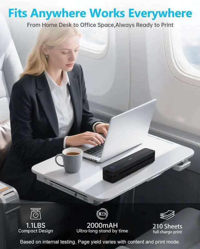 Long Lasting Power- Wireless thermal Printer Supports Multi-SizePowered by a long-lasting 2000mAh rechargeable battery, this impresora portátil offers up to 210 printed sheets per charge. Supports multiple thermal paper sizes, including US Letter 8.5 x 11, A4, A5, B5, and 4-inch paper, giving you the flexibility to print a wide range of document formats for different user needs.