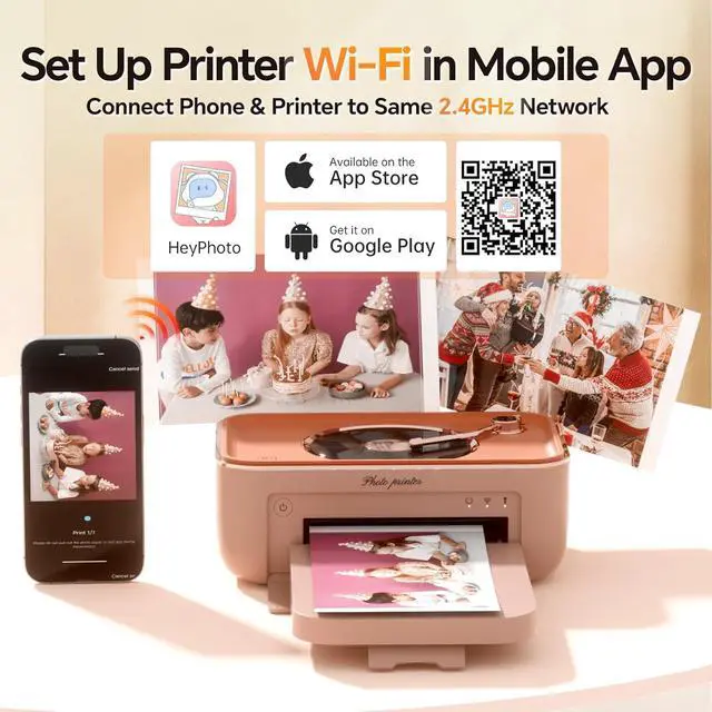 PRINT STUNNING 4X6 PHOTOS INSTANTLY FROM YOUR PHONE: Simply download the free HeyPhoto app to start printing beautiful 4x6 photos directly from your iPhone or Android. Enjoy flexible connectivity: choose to link both devices to your home Wi-Fi or create a direct wireless connection within the app the choice is yours!