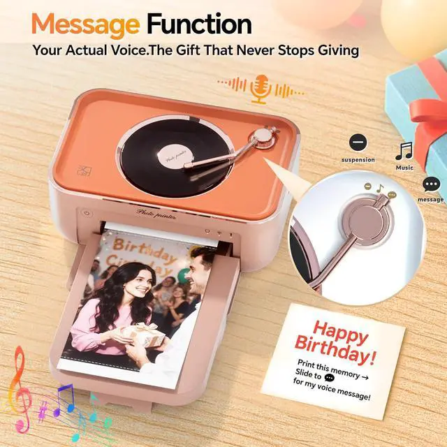 VOICE MESSAGE KEEPSAKE FEATURE: Turn your printed photos into cherished talking memories! Capture your voice and emotions by scanning the QR code on the printers base record a special birthday wish, a vacation moment, or a surprise message. Each print can carry not just an image, but a story told in your voice. To listen, simply slide the switch to the voice symbol. Make sure your phone and printer are on the same Wi-Fi (select STA mode in the HeyPhoto app), and relive your wonderful moments together. Tips: Only the most recent voice message is saved. Each new recording will replace the previous one, so be sure your loved one listens before you send a new surprise!