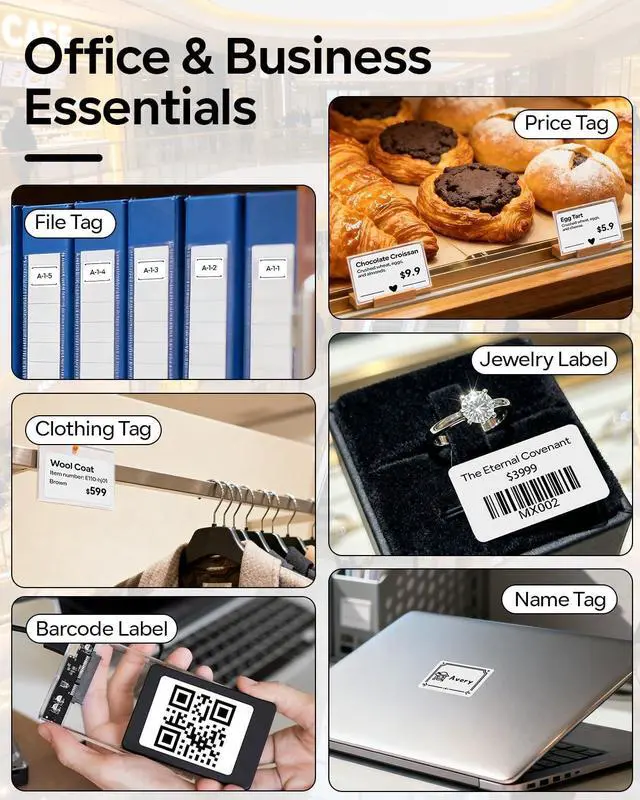 3-INCH PRINT WIDTH: Phomemo M221 Bluetooth label printer have a wide printing width of 0.78-3.14'(20-80 mm) and can work with over 50 types of thermal labels (no ink or toner), designed for many scenarios. The label maker machine with tape makes it easy to create barcode, QR Code, address, clothing, product, cable, jewelry, and folder labels, suitable for small business, office, home.