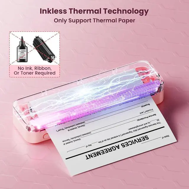 Portable Printers Wireless for Travel: The small wireless printer weighs only 1.5lb, compact and lightweight. It's mobile printer for vehicles, small office, school and home use. Built-in 2600mAh rechargeable battery, the Bluetooth portable printer can continuously print 140 sheets thermal paper on a single charge