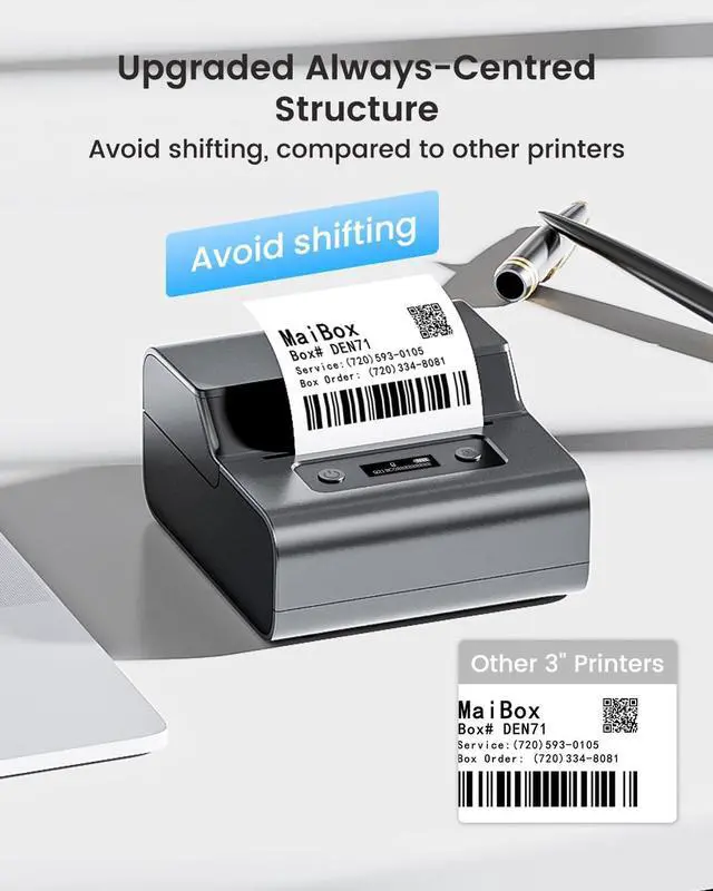 AVOID PRINT OFFSETS: Compared to the previous generation, we have precisely corrected the offset of print head. Furthermore, compared to the previous separate label fixer, which cannot always securely hold the label and could lose stability over timethe new integrated fixer of M221 has improved quality, and the new structure ensures that the label roll remains fixed in the center position. Thus avoiding printing offsets.