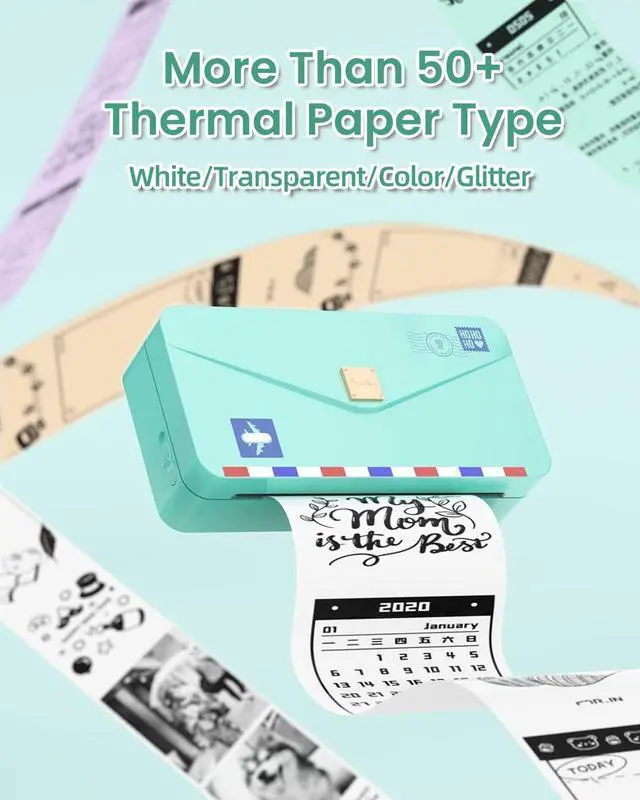 Versatile Paper Options - Compatible with more than 50+ different paper styles, including white, color, transparent, semi-transparent, and shiny thermal paper, as well as both sticker and non-sticker options. You can easily select your desired style and personalize your prints