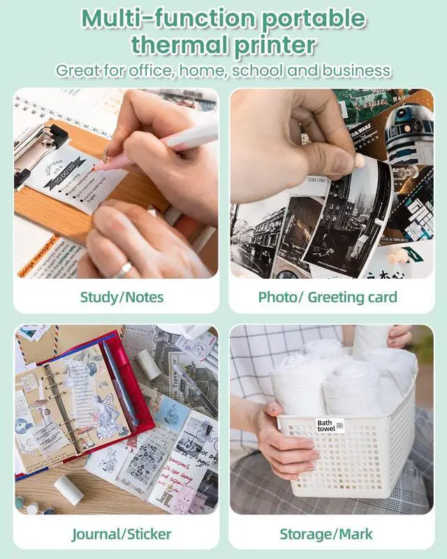 Multi-functional Thermal printer - this compact printer can print labels, photos, notes, stickers, documents, and even black and white photos or stickers. Suitable for home/office/school/business use. It's also a great gift choice for Christmas, Thanksgiving, or birthdays