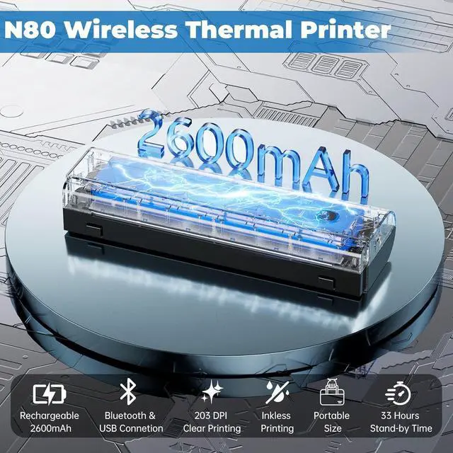 COMPACT PRINTERThe N80 not only a phone printer, but also a portable printers for laptops via a USB cable. This wireless printers for home use is compatible with Windows and macOS, offering true cross-platform functionality. Turn on the printer first and then install the driver to set up printing from a computer.