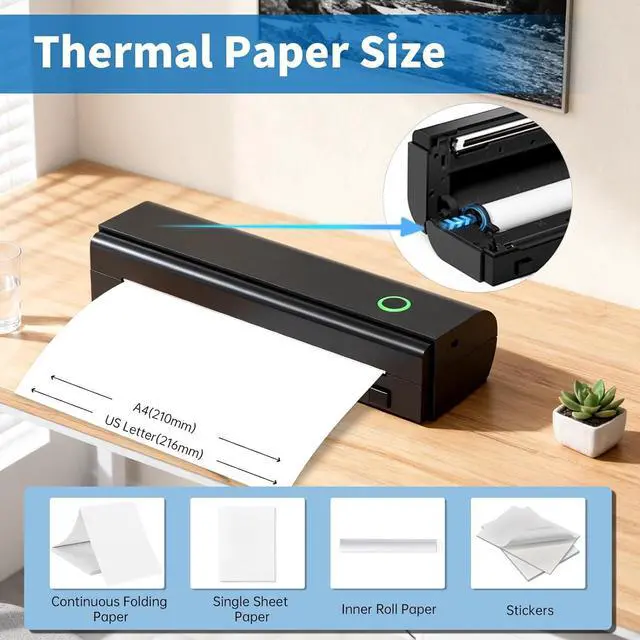 BLUETOOTH PRINTERWireless printer effortlessly connects to iOS & Android devices via the app. This mobile printer is perfect for printing PDFs, Word documents, images and web pages from your iPhone or other smartphone. It's ideal for printing notes, contracts, exam papers and DIY projects. This portable thermal printer delivers instant black-and-white prints on standard 8.5"×11" and A4 paper.