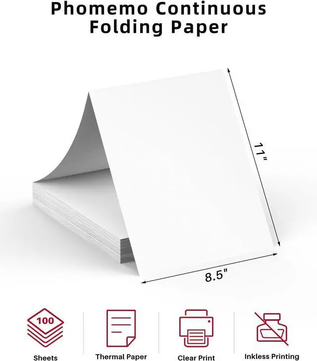 Versatile Compatibility: Phomemo Folding Thermal Paper: US Letter Size, 100 Sheets/Pack