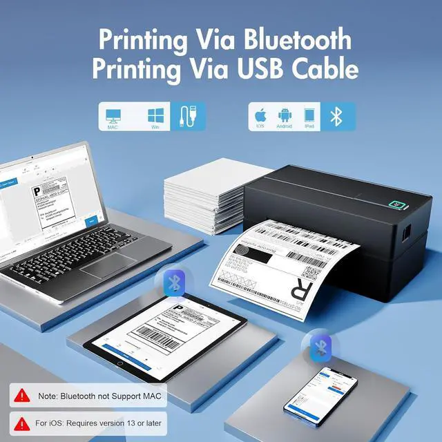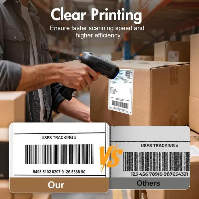 Multi-Label Size Support: Supports thermal labels with a width of 1.57" to 4.3", Compatible with 4x6, 3x2, and custom-sized labels to adapt to diverse packaging needs. (Note: thermal printers can only print in black and white, and comes with 25 sheets of waterproof label paper.