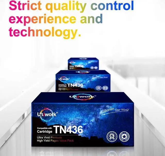 Uniwork TN436BK super high-yield toner cartridge can produce brilliant colors and sharp black prints.
