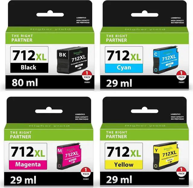 Package Contents: 1 x Black 712 Ink Cartridge, 1 x Cyan 712 Ink Cartridge, 1 x Magenta 712 Ink Cartridge, 1 x Yellow 712 Ink Cartridge (4 Pack)