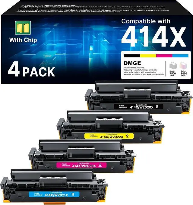 With Upgraded Chip: 414x high yield toner cartridges replacement for hp 414A 414X toner cartridges 4 pack high yield are equipped with the latest chips for hassle-free printing experience. No need to remove and install old chip on this replacement