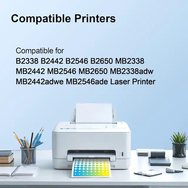 Compatible Printer: Lexmark B2338 B2442 B2546 B2650 MB2338 MB2442 MB2546 MB2650 MB2338adw MB2442adwe MB2546ade Laser Printer