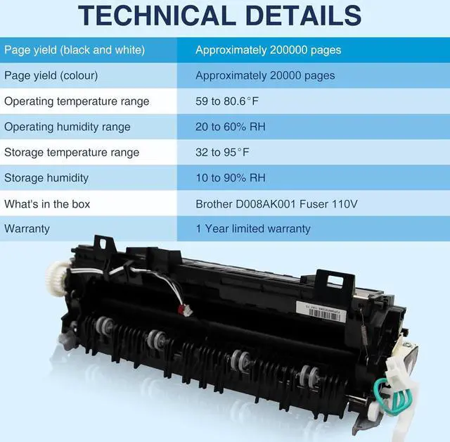 Professionalism You Can TrustThe D00V9L001, D008AK001, and D01SE6001 fuser kits undergo a rigorous production process to ensure superior color rendering and consistent print quality. Crafted from high-quality, high-temperature-resistant materials, the D008AK001 fuser kit is designed for durability, supporting continuous printing of up to 200,000 sheets. Our strict quality control measures guarantee excellence, and each unit is rigorously tested to ensure long-lasting performance. Give your printer a new lease on life with our reliable fuser kits