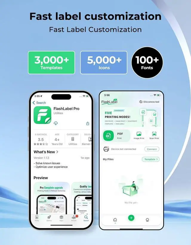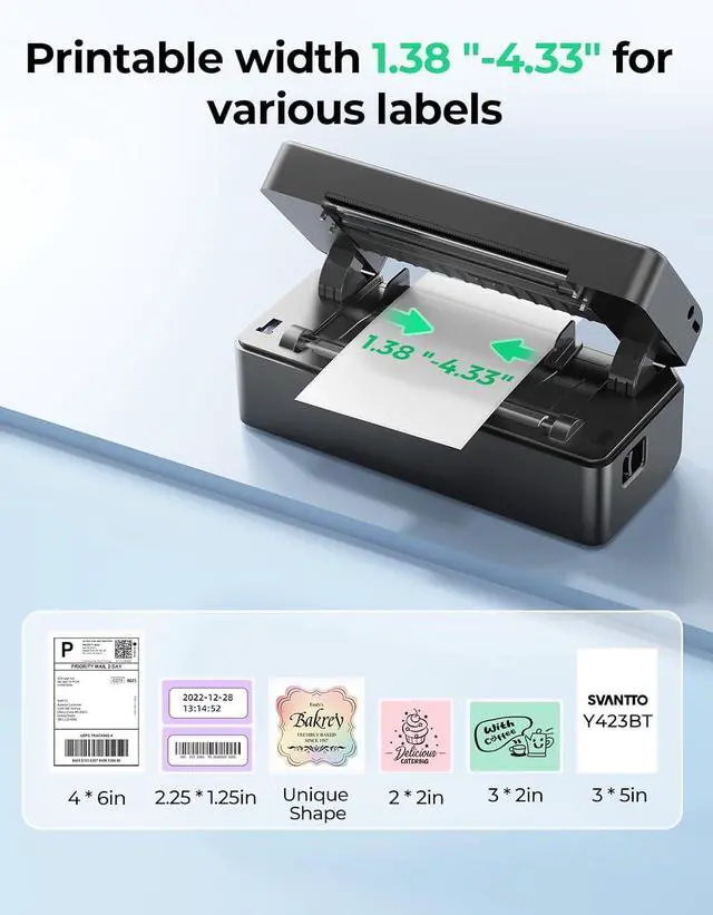 Dual Connectivity Options: The SVANTTO Y42BT thermal label printer supports USB connectivity for Windows, MacOS, and ChromeOS systems. It also connects via Bluetooth to iOS and Android devices. Simply download the "FlashLabel Pro" app on your phone. Note: Wi-Fi connection is not supported