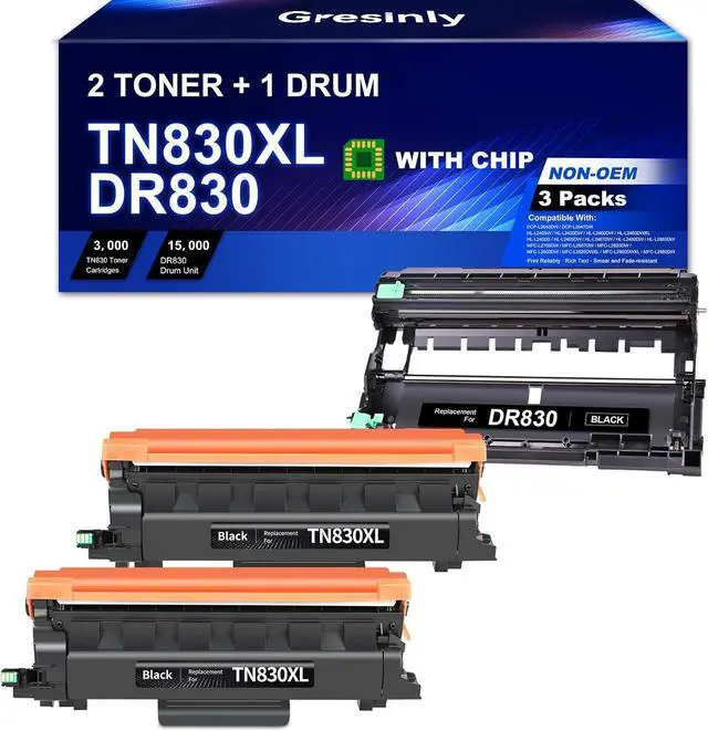 DR830 Drum+TN830XL Toner Cartridges 3 Pack Strong Compatibility: It works seamlessly with HL-L2460DW / HL-L2405W / DCP-L2640DW / HL-L2400D / MFC-L2820DW / HL-L2420DW / HL-L2460DWXL / HL-L2465DW / HL-L2467DW / HL-L2865DW / HL-L2480DW / DCP-L2647DW / MFC-L2760DW / MFC-L2807DW / MFC-L2820DWXL / MFC-L2900DW / MFC-2900DWXL / MFC-L2980DW printer, requiring no complicated setup after installation. It avoids compatibility issues that can cause printing failures