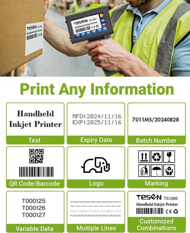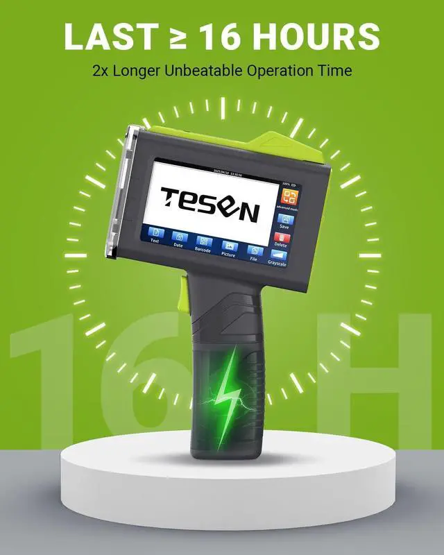 Extended Operation Time with 16+ Hours of Continuous Use: Experience unmatched performance with Tesen handheld inkjet printer, offering over 16 hours of uninterrupted use. Minimize downtime and maximize productivity with a printer that keeps up with your workflow, reducing the need for frequent recharges.