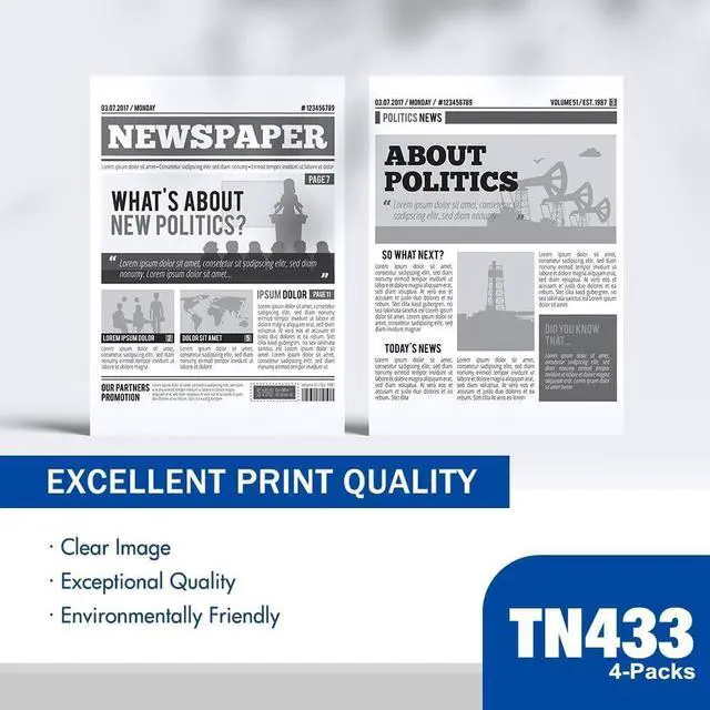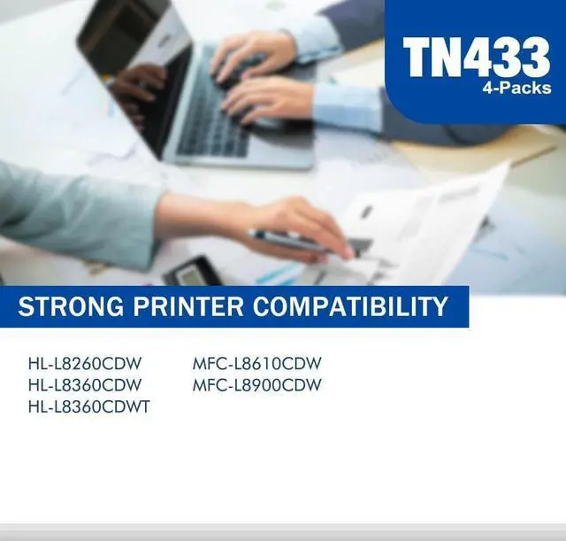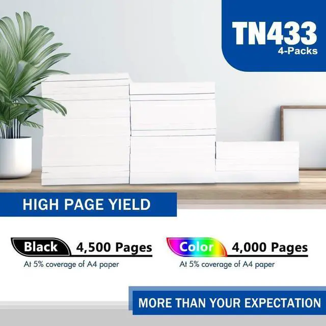 Page Yield: 4,500 Pages (Black/TN433BK) and 4,000 Pages (Cyan/Magenta/Yellow TN433C/TN433M/TN433Y) Based on 5% coverage (Letter/A4)