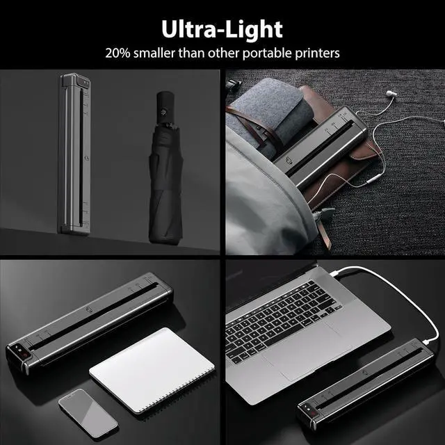 [Ultra-Lightweight]: Phomemo Q302 Ultra-Light compact portable thermal printer is 20% smaller and 35% lighter than other portable printers. It is the size of an umbrella and even lighter. You can hold it in one hand and easily put it in your bag for printing anytime, anywhere