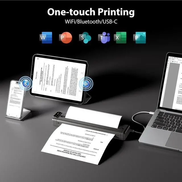 [One-Click Printing]: Phomemo Q302 inkless thermal printer supports Bluetooth/WiFi and connects to your phone app in just three seconds for one-click printing. You can also connect it to a computer via USB-C to download drivers for one-click printing. It supports printing formats like Word, PDF, Slides, TXT, Excel, and images. Print sizes include 8.5", 8", 7", and 5.8" (US Letter, A4, B5, A5) Thermal Paper