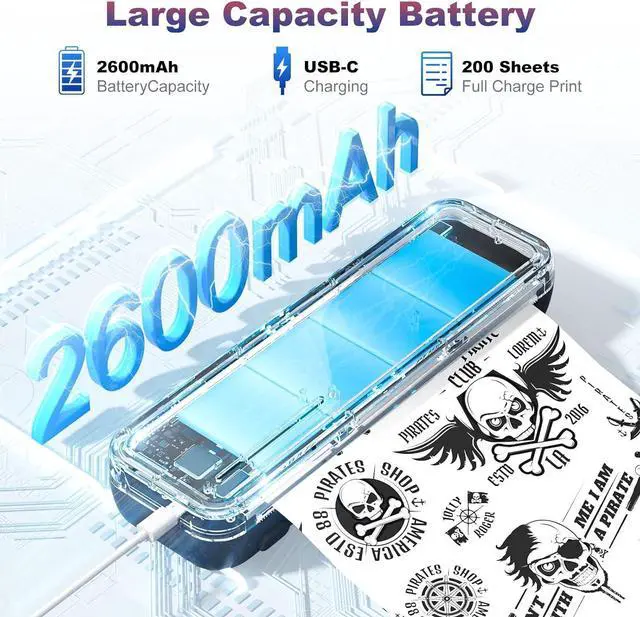 Wireless Printer: This portable printer uses HD printing technology to deliver crisp, clear prints. This inkless, wireless mobile printer runs for up to 3 hours on a full charge and can print up to 360 sheets of thermal paper. Compatible with roll, folding, and tattoo transfer paper, it enables on-the-go printing of PDFs, Word documents, images, and web content from your phone. (Note: Black-and-white printing only.)