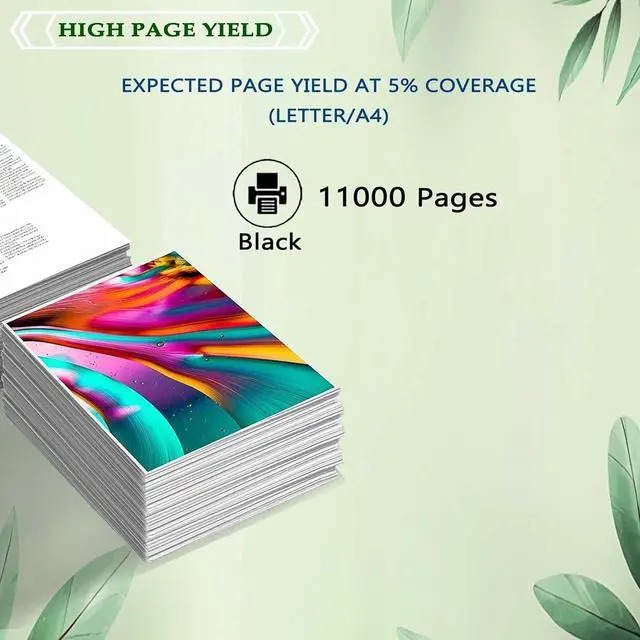 Reliability Longevity: Our Toner Cartridge with reliable printing lifespan. 11000 pages per Black cartridge (5% coverage on A4 paper), which you need't replace frequently