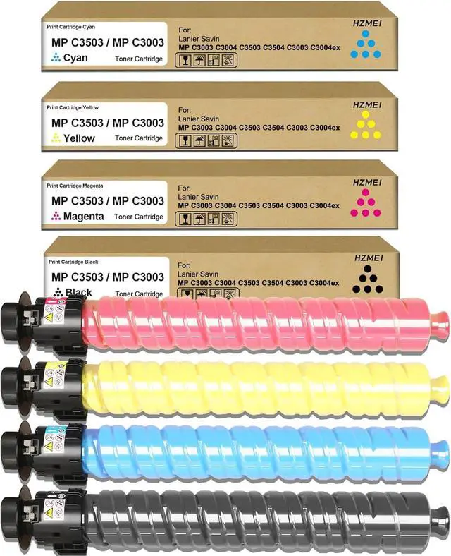 Package Contents:MP C3003 MP C3503 Toner Cartridge; MP C3003 MP C3503 Black Toner Cartridge, MP C3003 MP C3503 Cyan Toner Cartridge, MP C3003 MP C3503 Mangenta Toner Cartridge, MP C3003 MP C3503 Yellow Toner Cartridge Total 4 Pack