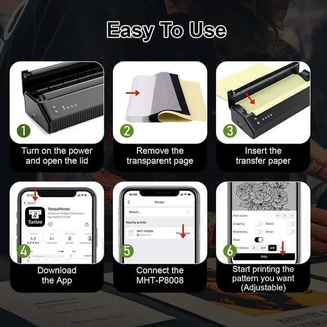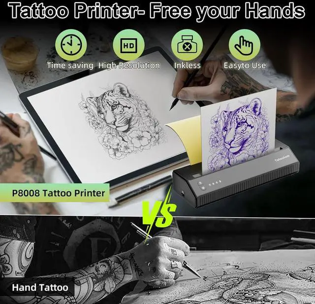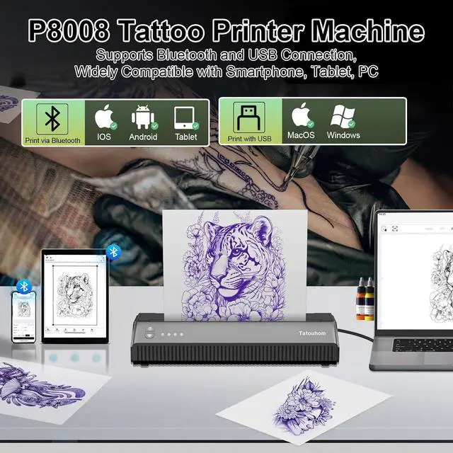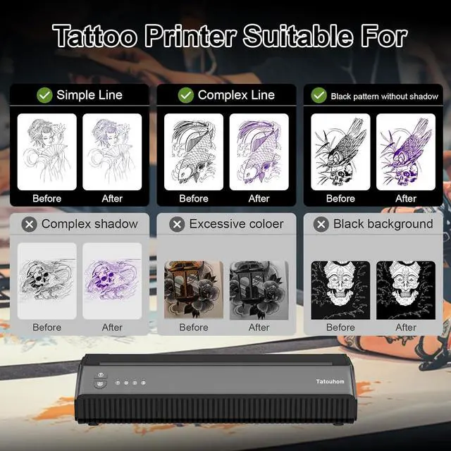 For All Tattoo Lovers: Designed for professionals, beginners, and tattoo enthusiasts alike, this tattoo printer machine kit is perfect for anyone exploring tattoo artistry. Whether you're creating bold designs or fine details, its versatile and easy to use for everyone.