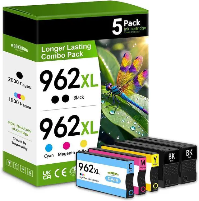 Package Contents: 5 Pack Ink Cartridges Replacement for HP 962xl Black and Color ink cartridges combo pack (2 Black,1 Cyan,1 Magenta,1 Yellow)