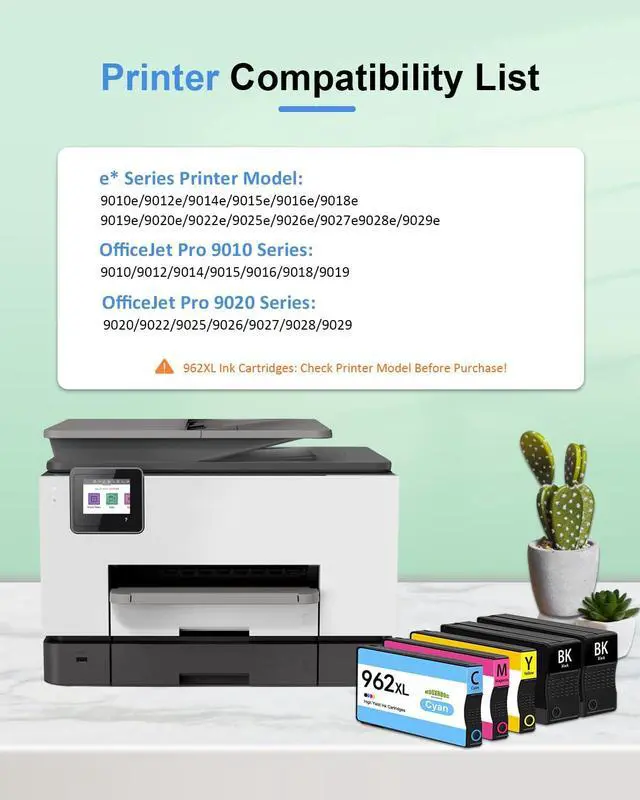 Outstanding performance and high quality: Our 962XL ink cartridges for hp printers equipped with the latest intelligent chip, undergoes strict quality control, offering you the best printing quality available