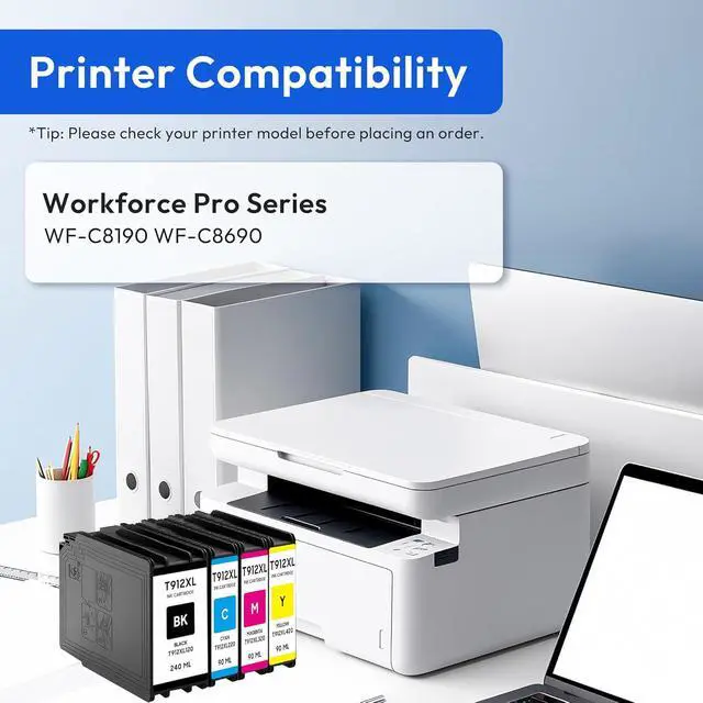 T912XL Ink Cartridge Work with: Replacement for Workforce Pro WF-C8190 WF-C8690 Printer.