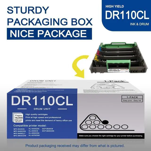 1 Pack DR110CL BK/C/M/Y Drum Unit replacement for Brother DR110CL Drum Unit.
