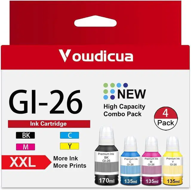 Package Contents: 4 Pack GI-26 Ink Cartridge ( Black, Cyan, Magenta, Yellow )