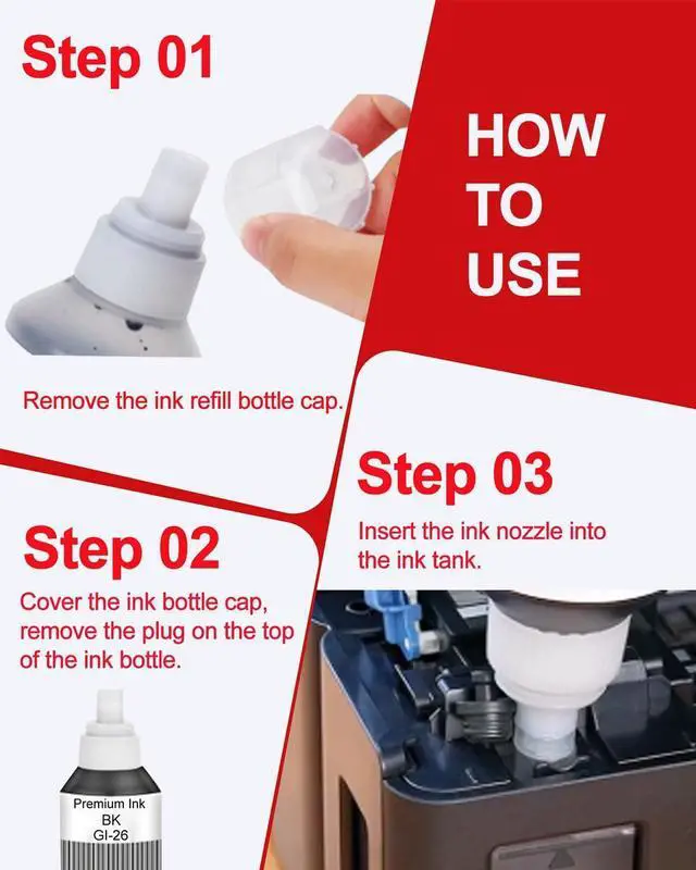 Outstanding performance and high quality: GI26 GI-26 Ink Bottles ensures clear prints and delivers the desired color effect on paper, meeting all your office and home printing needs. Enjoy its reliable performance whenever you need it.