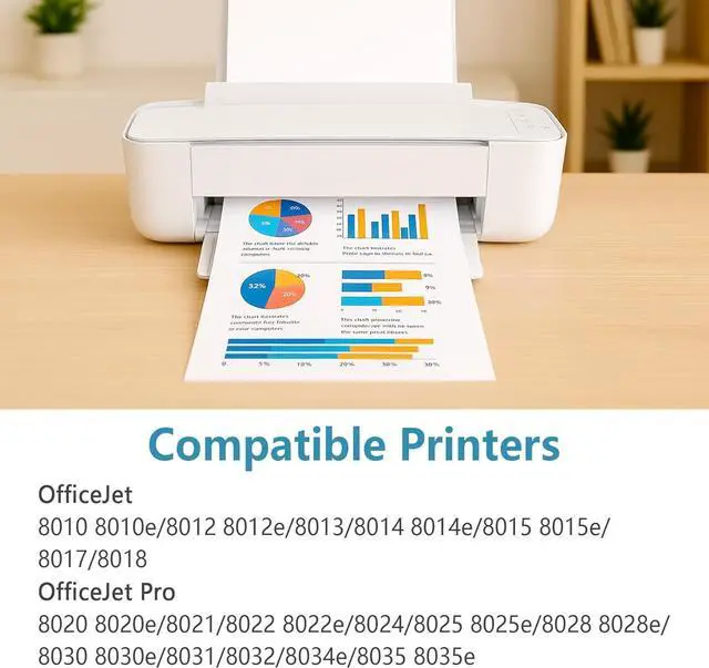 Wide Printer Compatibility Perfectly fits for OfficeJet 8010, 8010e, 8012e, 8014e, 8015, 8015e, 8018, 8022, 8022e; and OfficeJet Pro 8020, 8020e, 8024e, 8025, 8025e, 8028, 8028e, 8035, 8035e printers.