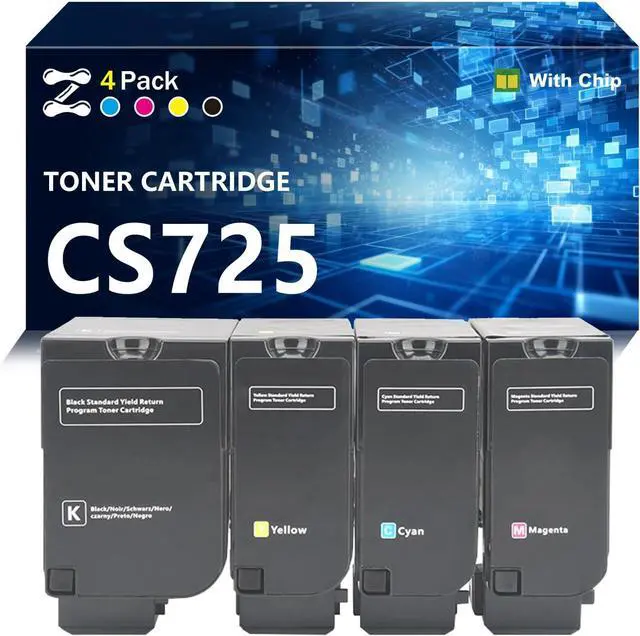 Package Contents: 74C1SK0 black toner cartridge * 1, 74C1SC0 cyan toner cartridge * 1, 74C1SM0 magenta toner cartridge * 1, 74C1SY0 yellow toner cartridge * 1, Installation and user guide for Lexmark CS720 toner cartridges * 1