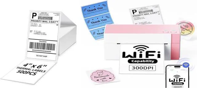 [2025 Upgraded Label Printer] This thermal label printer is equipped with a Japanese high-tech thermal print head, delivering 300 DPI high-quality printing.No ink, No toner, Clean with no mess, economical. Works with both fanfold labels and roll labels. its ideal for small businesses and personal use.