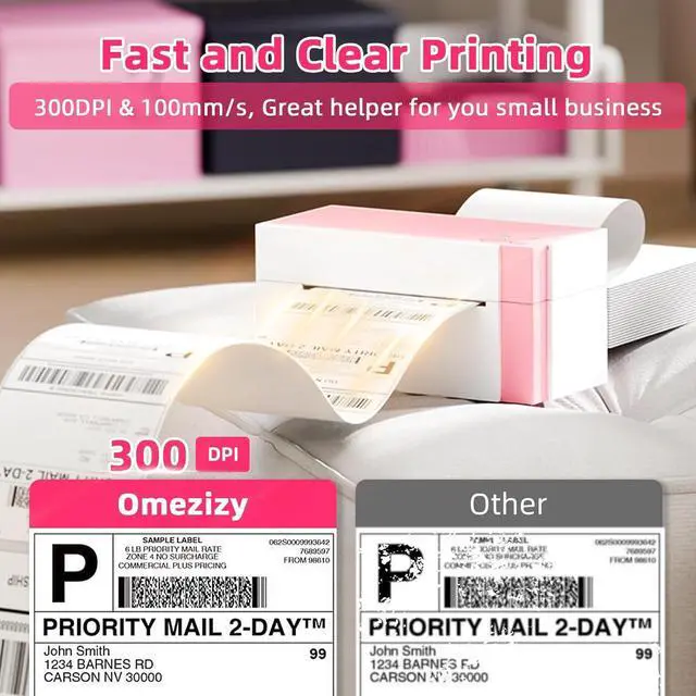 [300 DPI&High-Speed Printing]Equipped with a 300 DPI high-resolution printhead, this shipping label printer produces clear, scannable labels. Upgraded technology enables 100mm/s printing speed, up to 72 sheets of 4"x6" labels per minute. Its an efficient label printer for small businesses to save time.