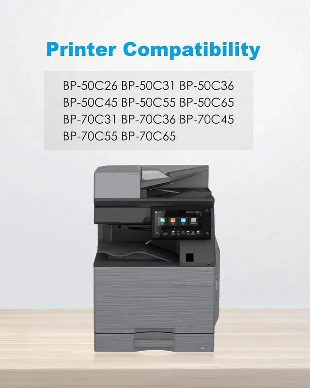 These bp-nt70 toner cartridges work with: BP-50C26 BP-50C31 BP-50C36 BP-50C45 BP-50C55 BP-50C65 BP-70C31 BP-70C36 BP-70C45 BP-70C55 BP-70C65
