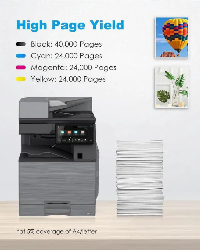 Cartridge high yield per cartridge: Up to 40000 pages per black toner cartridge; Up to 24000 pages per toner cartridges for printers cyan magenta yellow (at 5% coverage on A4 paper)