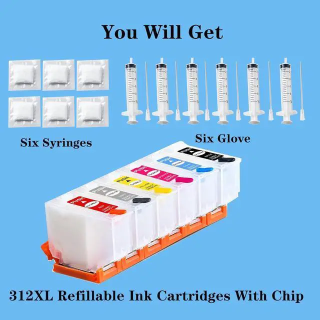 Empty Ink Cartridge Kit: You will get 6 empty ink cartridges, which are marked with corresponding colors for easy distinction, and 6 ink syringes and gloves, which will make it easy for you to fill ink cartridges. Our ink cartridge has been equipped with disposable chips, which saves you the trouble of buying chips and is very convenient to use. These printing cartridges can be reused, and it is not necessary to buy cartridges frequently, thus reducing the waste of resources