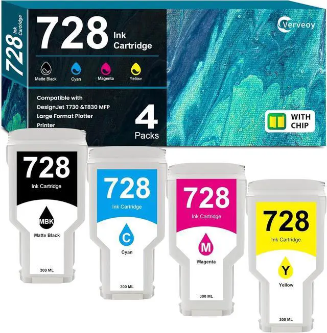 Item Name: Verveoy replacement for hp 728 728XL Ink Cartridges set 300ml for designjet 728 ink cartridges (4-Pack, MBK/C/M/Y)